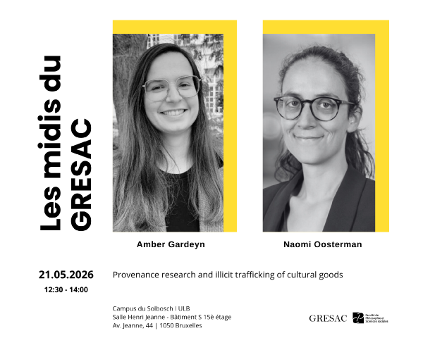 Nous enchaînons ensuite avec notre séminaire mensuel "Les Midis du GRESAC", autour d’un lunch léger. Nous aurons le plaisir d’accueillir Amber Gardeyn (UGhent) et Naomi Oosterman (Erasmus University Rotterdam).